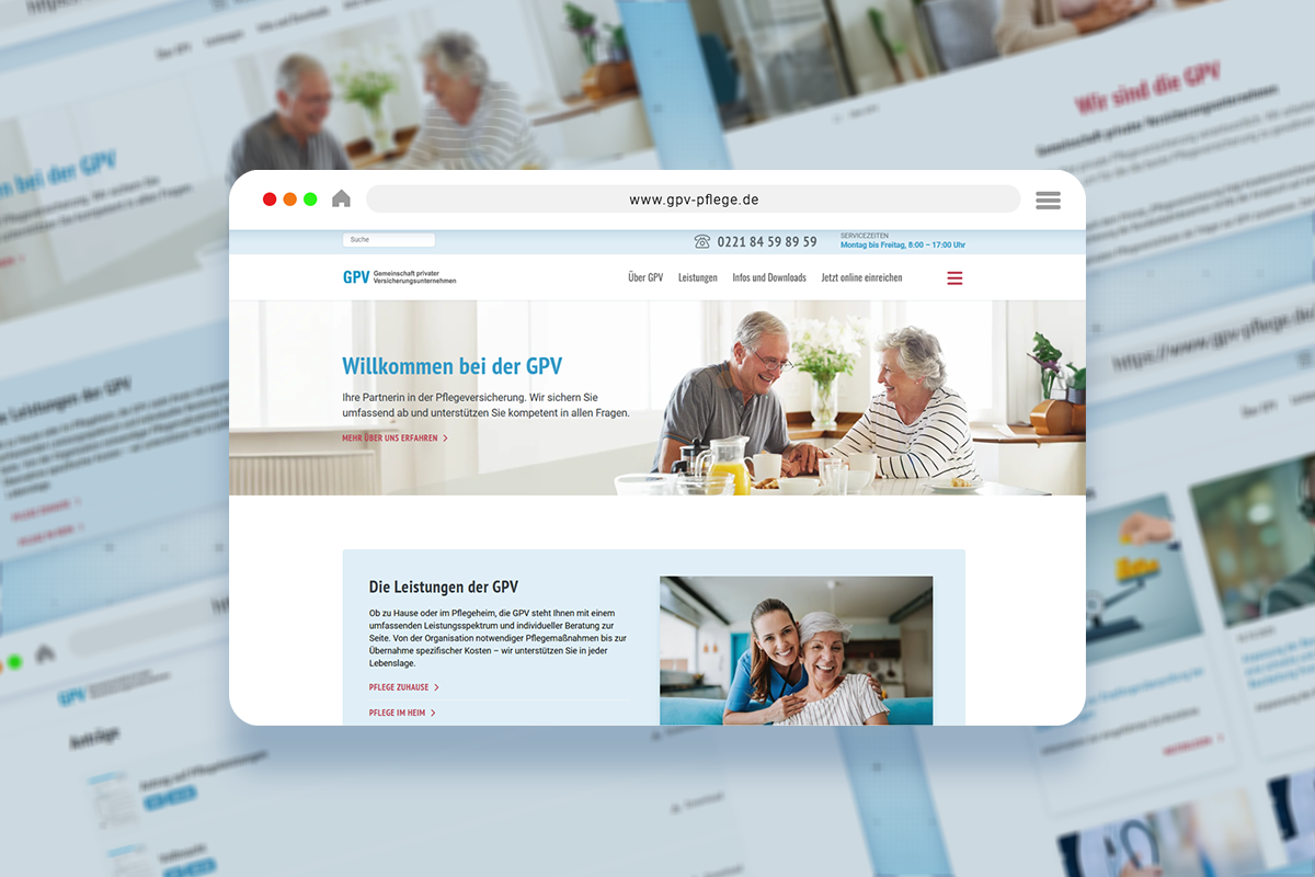 Mit der neuen Website präsentiert sich die GPV als verlässlicher Partner in allen Fragen der privaten Pflegeversicherung für Bahn-Beamte. Die barrierearme Umsetzung, die seniorengerechte UX und die klare Aufbereitung komplexer Inhalte erleichtern sowohl Versicherten als auch Angehörigen den Zugang zu wichtigen Informationen.